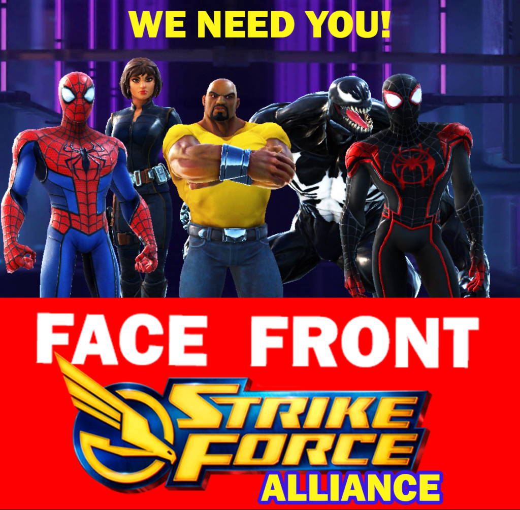 Face Front needs you True Believer! If you play Marvel Strike Force and are a Face Front member with an Alliance Ticket then you can join our alliance!