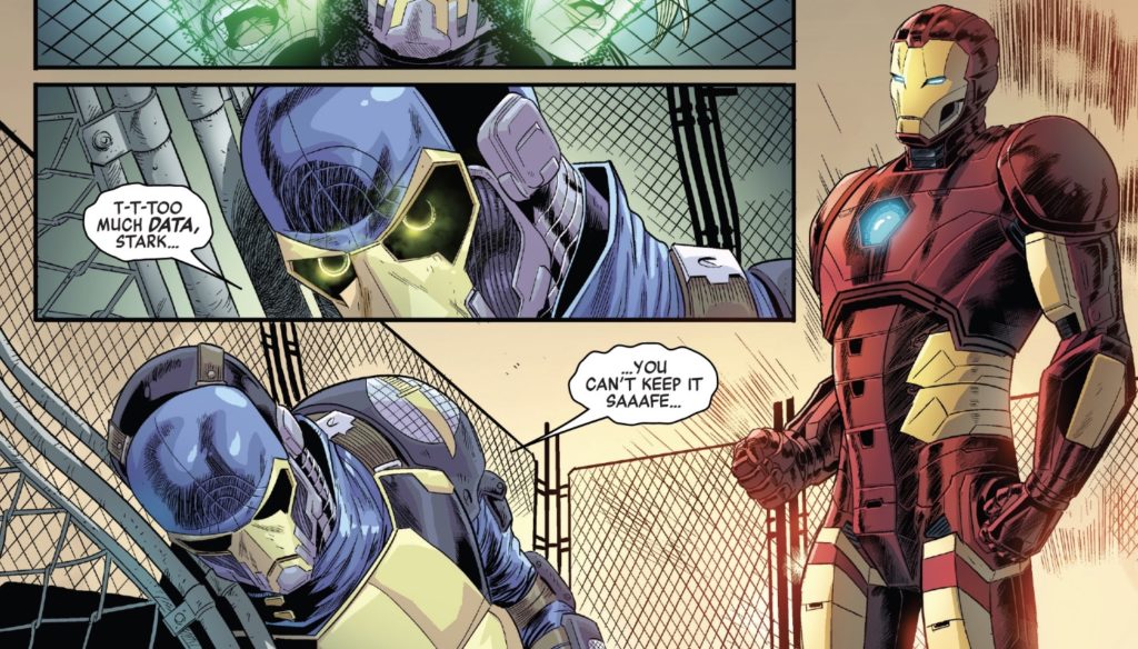 Iron Man stopped Spymaster, but he went down letting Tony know that they lived in the Information Age, and his final words were: “Too much data, Stark… you can’t keep it safe.”