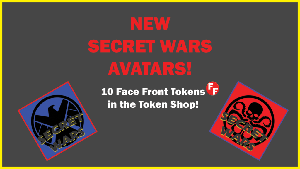 Want to show your team spirit? Secret Wars Avatars for your Face Front profile are now available in the Token Shop for only 10 Face Front Tokens! You must choose a faction in Secret Wars before purchasing!