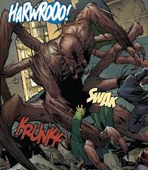 The Inheritors are a race of energy vampires that feed off of the essences of basically anyone in the Spider-Verse, or Spider-Totems. This puts every Spider-Man, woman, and pig at risk! The Inheritors were the reason for the initial Spider-Verse storyline in 2014, though the one of them featured in this video, Morlun, has been around in comics much longer than that. He mentions in the video that he will ‘never truly die’ because it was discovered, by Kaine and some friends, actually, that when an Inheritor dies, they are replaced with a clone, all memories intact, and thus they live again!